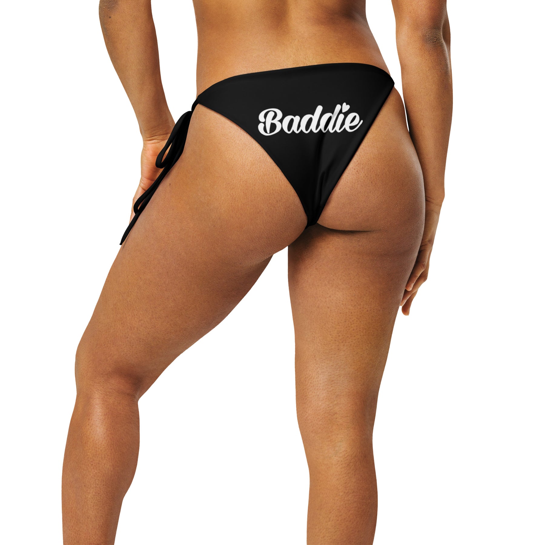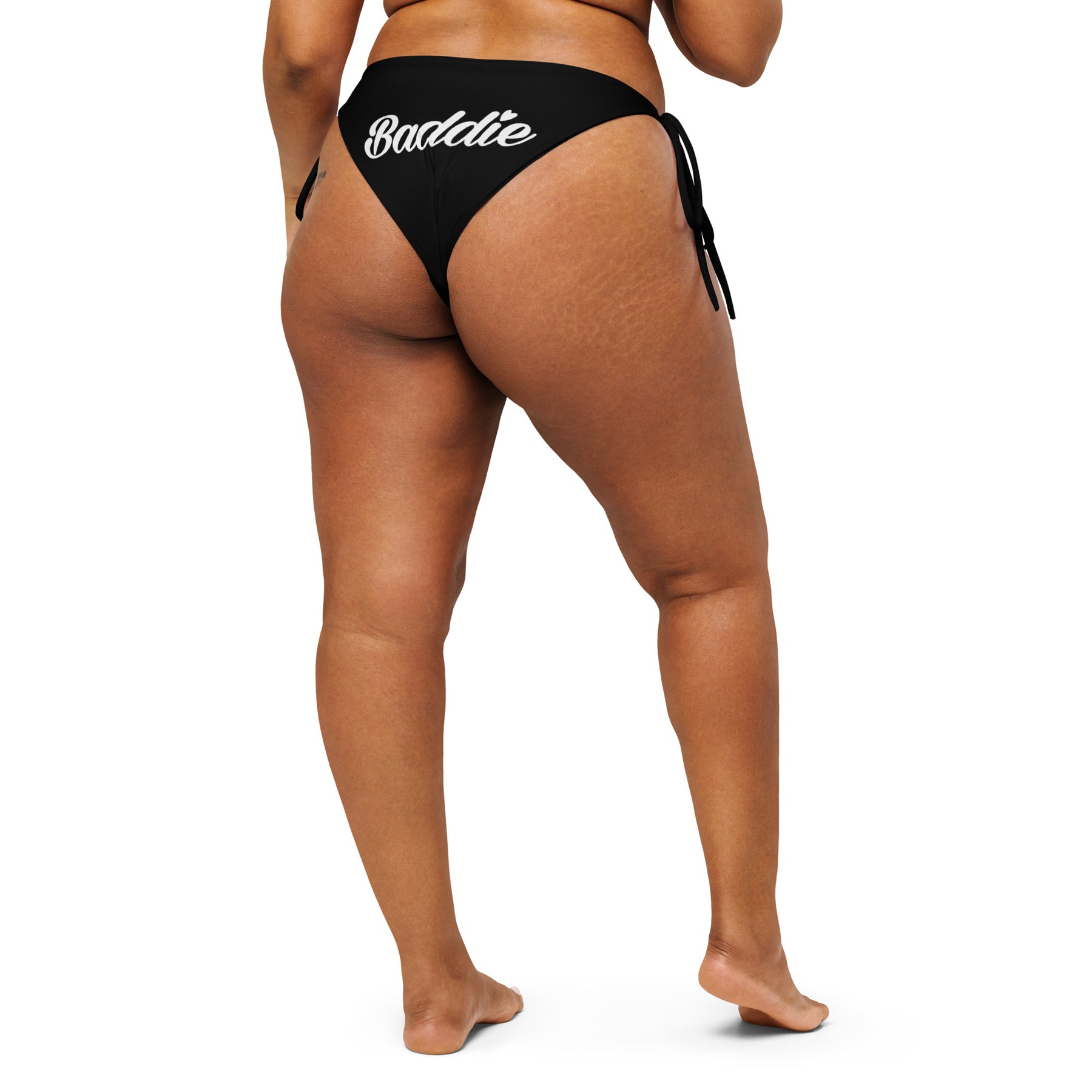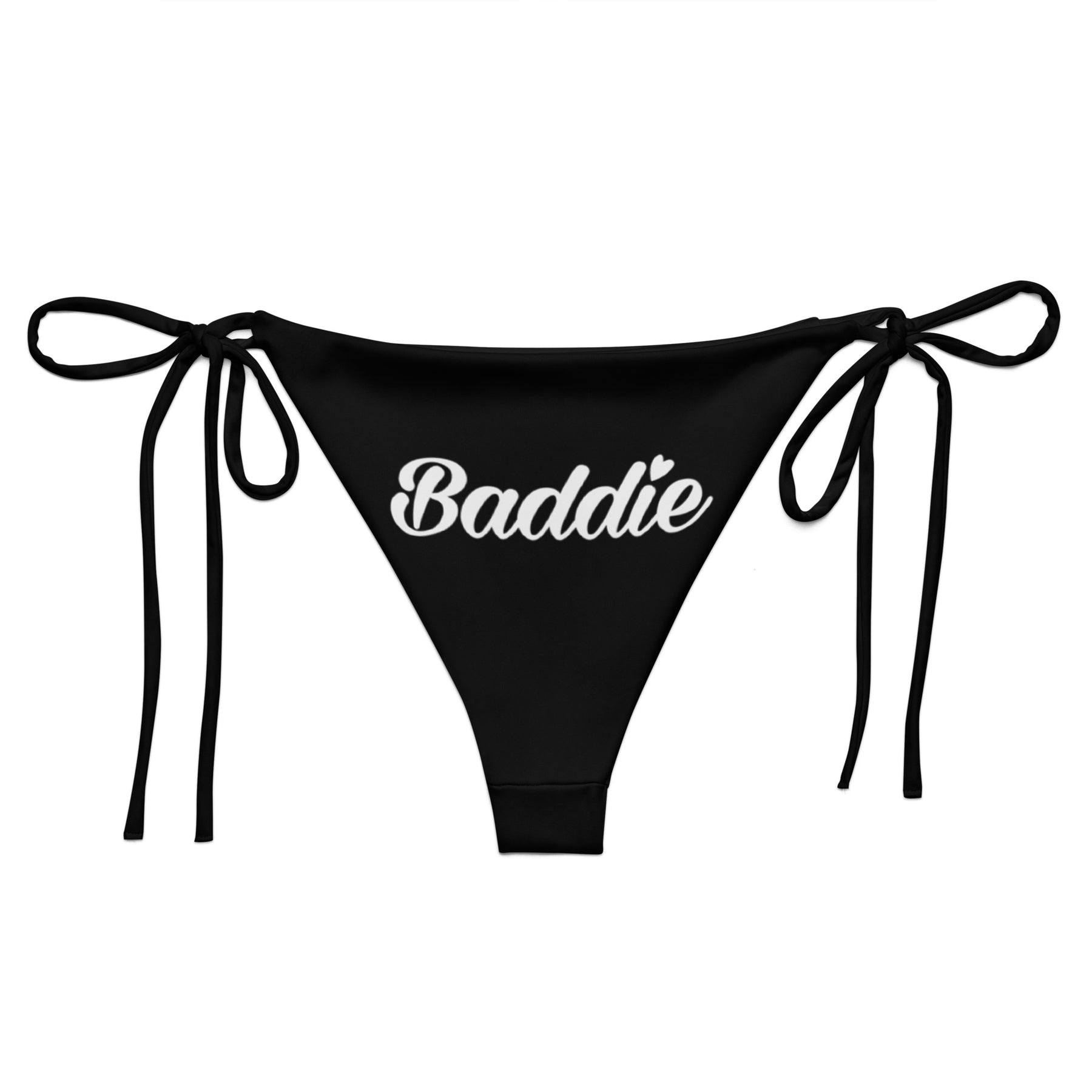 BLACK STRING WOMAN BIKINI BOTTOM WITH WHITE BADDIE LOGO PERFECT SUMMER AND BEACH SWIMWEAR